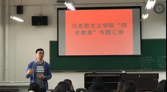 第二个环节是由薛明琪老师围绕“四史专题”教育汇报相关情况,薛明琪老师汇报了学院毛中特、史纲两个课程组的党史教育教学工作的开展情况和进度。