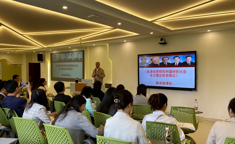 马克思主义学院组织全院教师备课会。本次会议有幸邀请到我院客座教授、校级督导石嵩麟教授针对“如何做好思政课程教学”与大家进行交流,并以《毛泽东思想和中国特色社会主义理论体系概论》课程为例,分享了“两点认识+三点体会”。