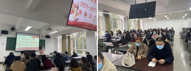 2022年2月24日上午10点,马克思主义学院于教学楼202-1教室召开了2022年新学期教学工作部署会议。本次会议由马克思主义学院勾英院长主持,全体马克思主义学院教师参加。本次会议议题围绕2022年学校及学院工作总任务,从微观、中观以及宏观角度为全体马院教师剖析了学院管理工作办法、布置了新学期的主要任务及工作安排。