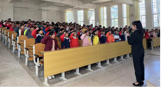 在此背景下,2021年12月14日星期二下午,马克思主义学院四名教师以及四名小学教育本科专业中优秀的大二学生,一行八人再次来到昆明市嵩明县普渡社区上游小学,给全校四年级的学生宣讲党的十九届六中全会精神。