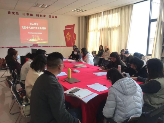 2021年11月26日下午,马克思主义学院组织党员及预备党员,在力行楼312办公室召开了“深入学习党的十九届六中全会精神”专题会议。会议学习了《中国共产党第十九届中央委员会第六次全体会议公报》主要精神,并由代表人员分享了会议精神学习心得。