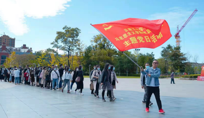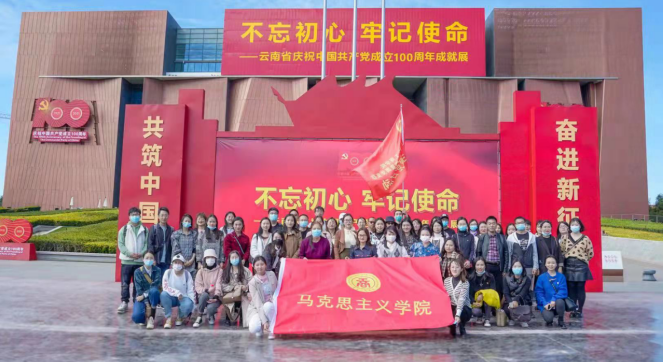 为充分发挥成就展的教育引导作用,切实提高政治站位,2021年11月5日13时,云南工商学院图书馆前党旗飘扬,马克思主义学院直属党支部全体党员教师意气风发,在勾英院长的主持带领下前往云南省博物馆参观“不忘初心、牢记使命”—云南省庆祝中国共产党成立100周年成就展主题党日活动。