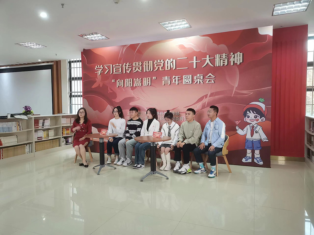 为深入学习宣传贯彻党的二十大精神,强化基层青年学习效果,中共嵩明县委宣传部主办、昆明报业传媒集团·掌上春城、嵩明职教新城管理委员会、云南工商学院、 昆明城市学院、云南大学滇池学院、云南经贸外事职业学院、昆明文理学院共同承办“向阳嵩明”青年圆桌论坛,采用线上直播的方式,以青年视角谈对党的二十大报告的感受和期待,畅谈“我眼中的党的二十大”。
