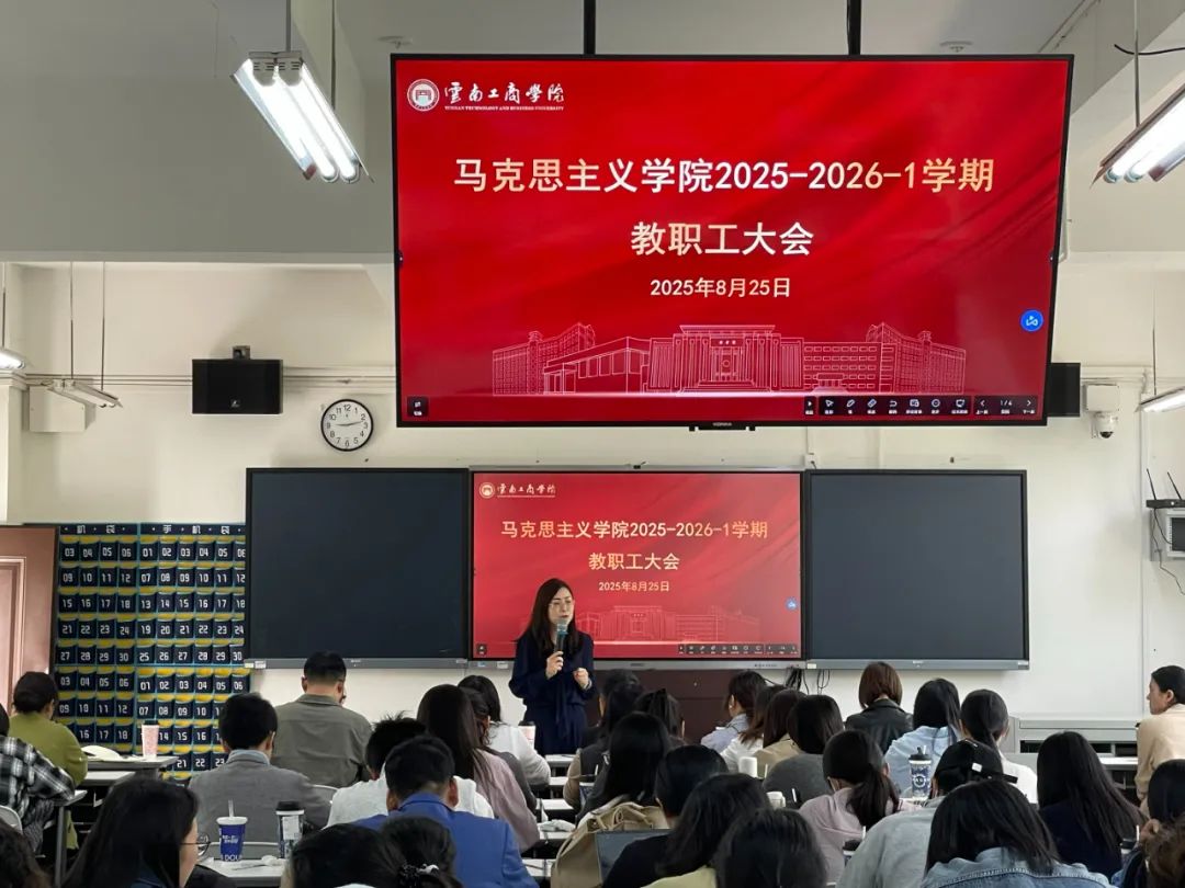 8月25日上午,云南工商学院马克思主义学院2025—2026学年第一学期教职工大会在致知楼201-1教室顺利召开。本次会议由学院办公室主任王涛主持,全体教师参加。